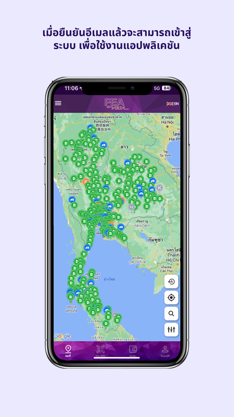 PEA VOLTA Application สำหรับควบคุมการชาร์จรถยนต์ไฟฟ้าที่ PEA พัฒนาขึ้นเพื่ออำนวยความสะดวกแก่ผู้ใช้งานโดยสามารถค้นหาสถานีชาร์จที่ใกล้ที่สุดพร้อมแสดงสถานะแบบเรียลไทม์ และควบคุมการชาร์จได้อย่างง่ายดายเพียงปลายนิ้ว